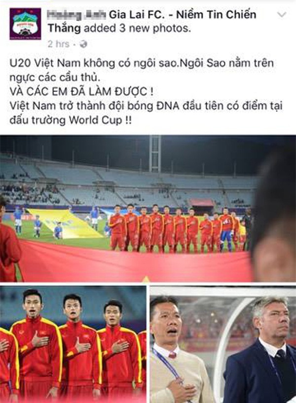 'Tự hào' có thể nói là hai từ diễn đạt chính xác nhất cảm xúc của người hâm mộ từ hôm qua đến này dành cho U20 Việt Nam khi lần đầu tiên trong lịch sử bóng đá nước nhà, đội bóng nước ta ghi điểm trong giải đấu lớn của thế giới.
