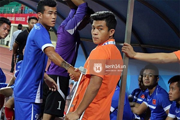 Tấn Tài đeo nạng tới cổ vũ các đồng đội
