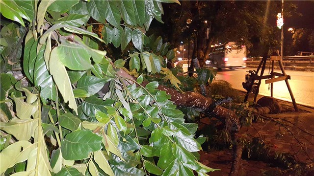 Cây bị bật gốc trên đường Nguyễn Trãi |
