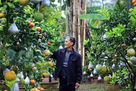 Cây 10 quả được ghép từ các loại quả có "họ hàng" với cam, quýt như phật thủ, chanh đào, chanh, bưởi đỏ, bưởi da xanh, bưởi hồ lô, cam đường, cam Vinh, quất, bưởi Diễn. Chủ nhân của những cây cảnh này là ông Lê Đức Giáp (thôn Bãi, xã Cao Viên, Thanh Oai, Hà Nội).
