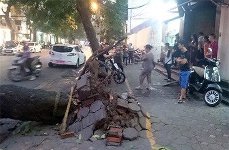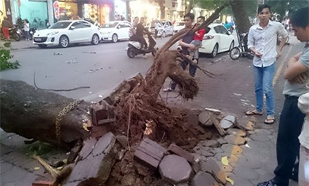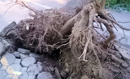 Theo ông Nguyễn Ất Dậu (SN 1971, tổ trưởng tổ 8A địa bàn dân cư số 8, phường Ngô Thị Nhậm, Hà Nội) cho biết, trước đó cây quếch có tình trạng bị bật gốc, nghiêng. |