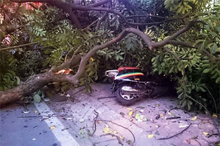 | Nhiều xe máy may mắn không bị cành cây đè vào. |