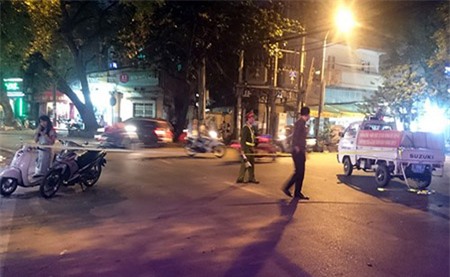 Lực lượng chức năng phong tỏa hai đầu đoạn đường Lê Văn Hưu.