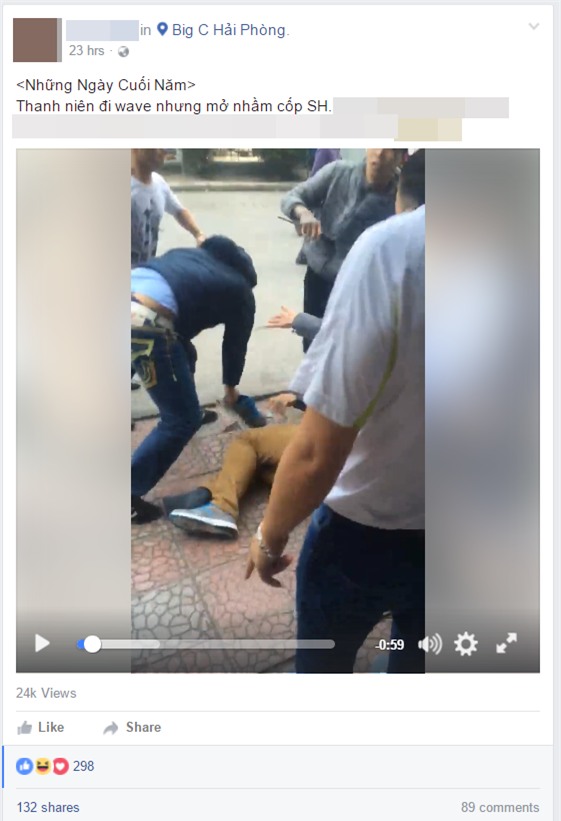 Nam thanh niên được cho là có ý định mở cốp xe SH để trộm đồ nhưng bị phát hiện, sau đó bị nhóm người xông vào đánh đập dã man. Đoạn clip ghi lại cảnh tượng này được chia sẻ lên mạng xã hội khiến nhiều người xôn xao.