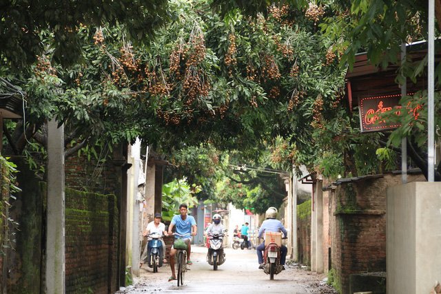 Trên đường làng của xã Đại Thành đâu đâu cũng thấy nhãn, khoảng 2/9 mới bắt đầu chín. Tuy nhiên, theo người dân ở đây, năm nay nhãn được mùa nên có thể không được giá cao bằng những năm trước.