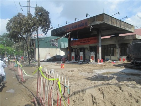 cây xăng 2B Trần Hưng Đạo có nhiều nhà dân mọc lên san sát, không đảm