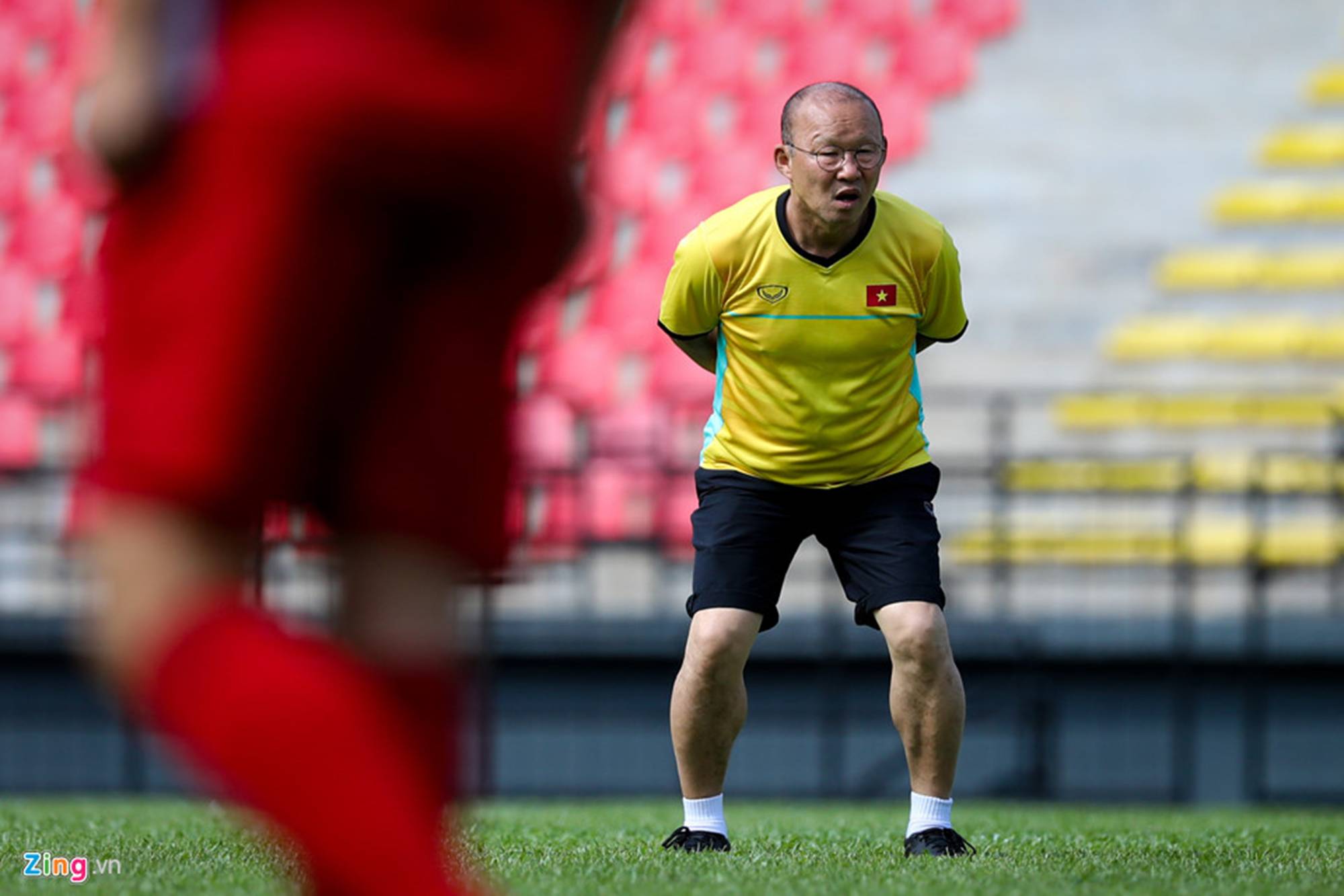 Cách đó vài chục mét, thầy trò HLV Park Hang-seo tập trung toàn bộ vào buổi tập của mình.