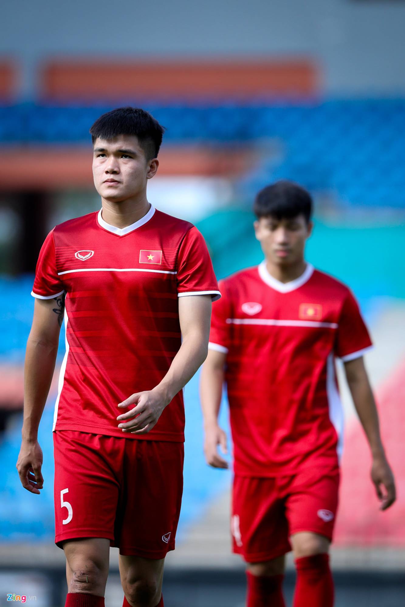 Đoàn Văn Hậu nỗ lực tập luyện. Hậu vệ của CLB Hà Nội sinh năm 1999 nhưng đang là trụ cột không thể thay thế ở hàng thủ tuyển Việt Nam.