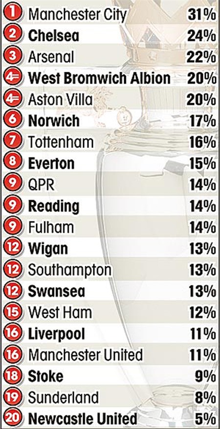 ngày. CĐV Sunderland đứng thứ hai từ dưới lên với 8%. Dù là nhà vô địch