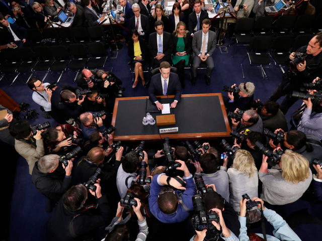Mark Zuckerberg tại phiên điều trần với Hạ viên Mỹ vào trung tuần tháng 4.