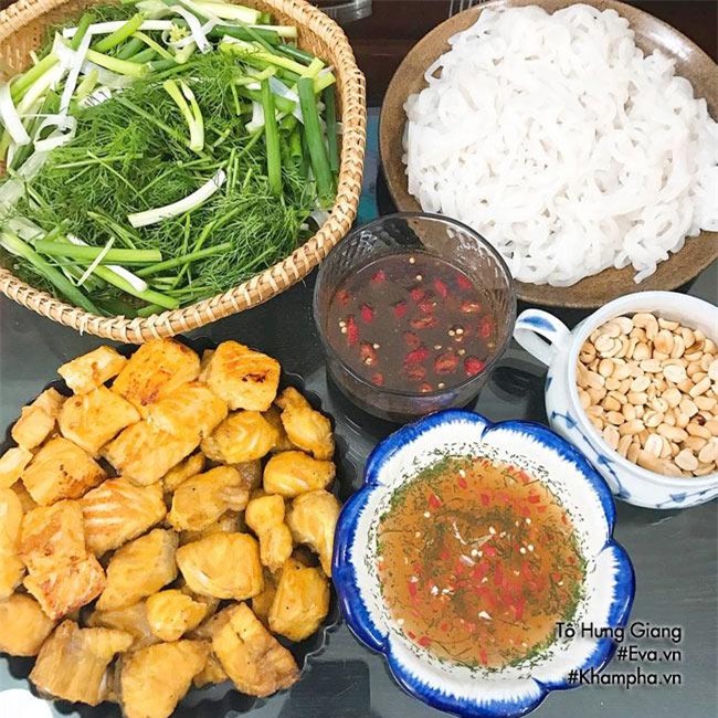 Phần pha nước chấm tuỳ ý mọi người. Không ăn được mắm tôm thì pha nước mắm chua ngọt, thái nhỏ thêm chút lá thìa là cho vào bát nước chấm.