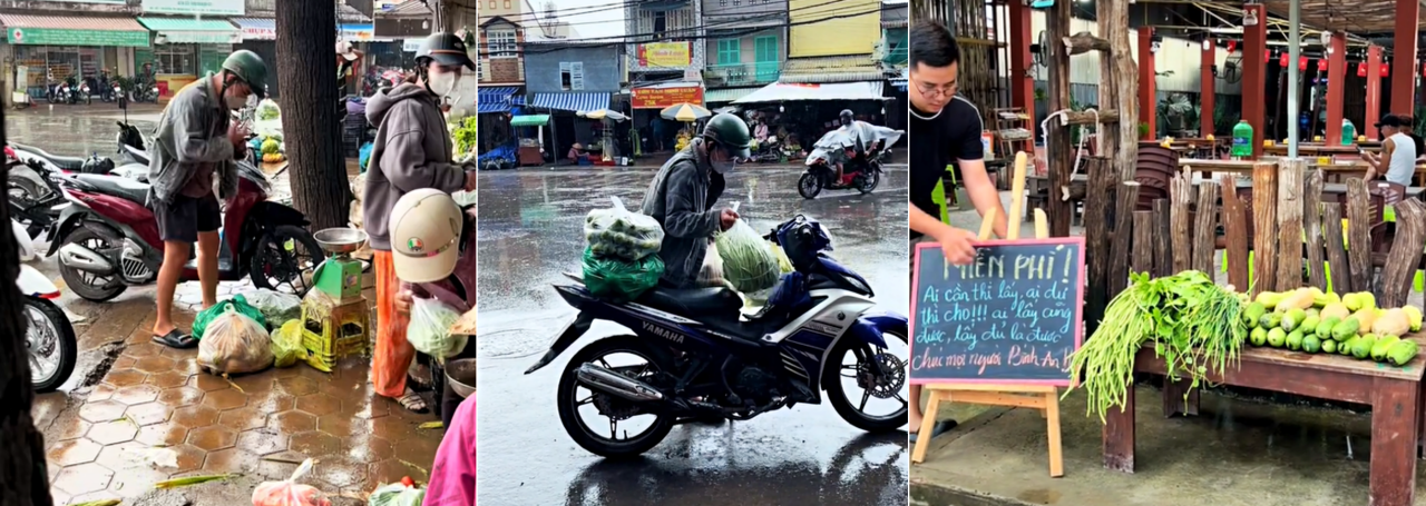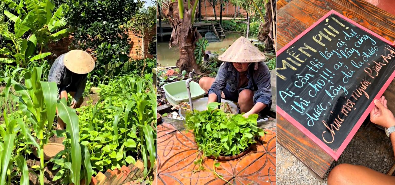 Tôi thấy ý tưởng rất hay nên mở sạp rau miễn phí để ai cần thì đến lấy. Để người cần hiểu và đến lấy rau một cách tự nhiên nhất, tôi viết thông tin trên tấm bảng dựng gần đó nói rõ: “Ai cần thì lấy, ai dư thì cho. Ai lấy cũng được, lấy đủ là được”.