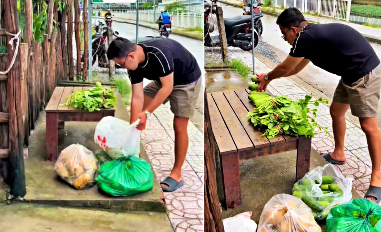Hiện anh Âu không có ý định đóng sạp rau mà sẽ duy trì việc tặng rau củ mỗi ngày. Ảnh: Cắt từ clip