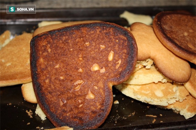 Ba vẫn cười với mẹ, lấy bánh, phết bơ và ăn rất ngon lành như không hề nhận thấy bánh bị cháy.