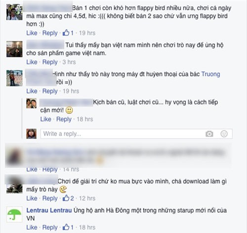 “Game vớ vẩn. Chơi nhức óc. Trước may mắn nên Falppy Bird mới nổi. Nhưng cũng không gõ cửa lần hai đâu.