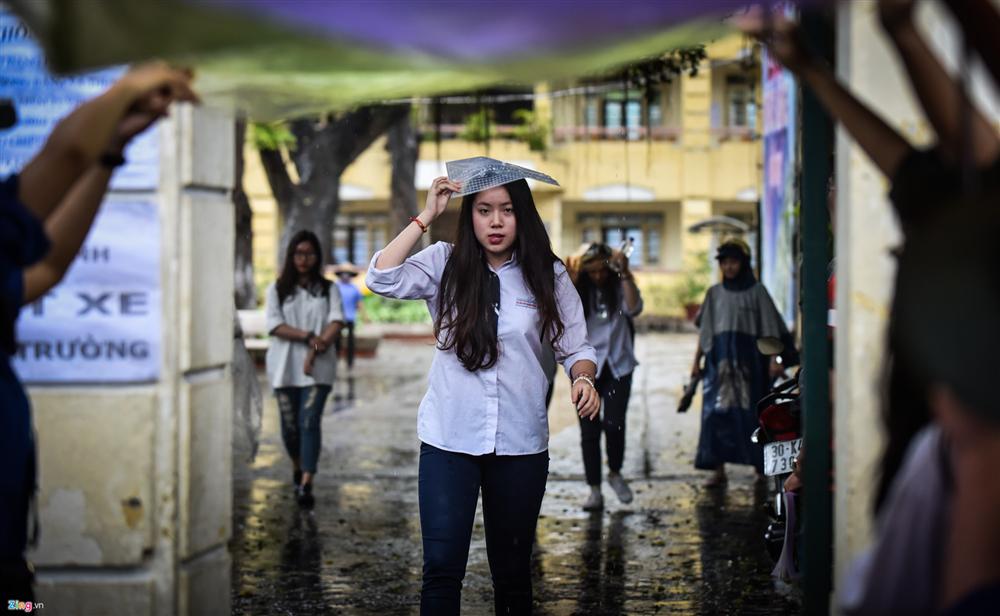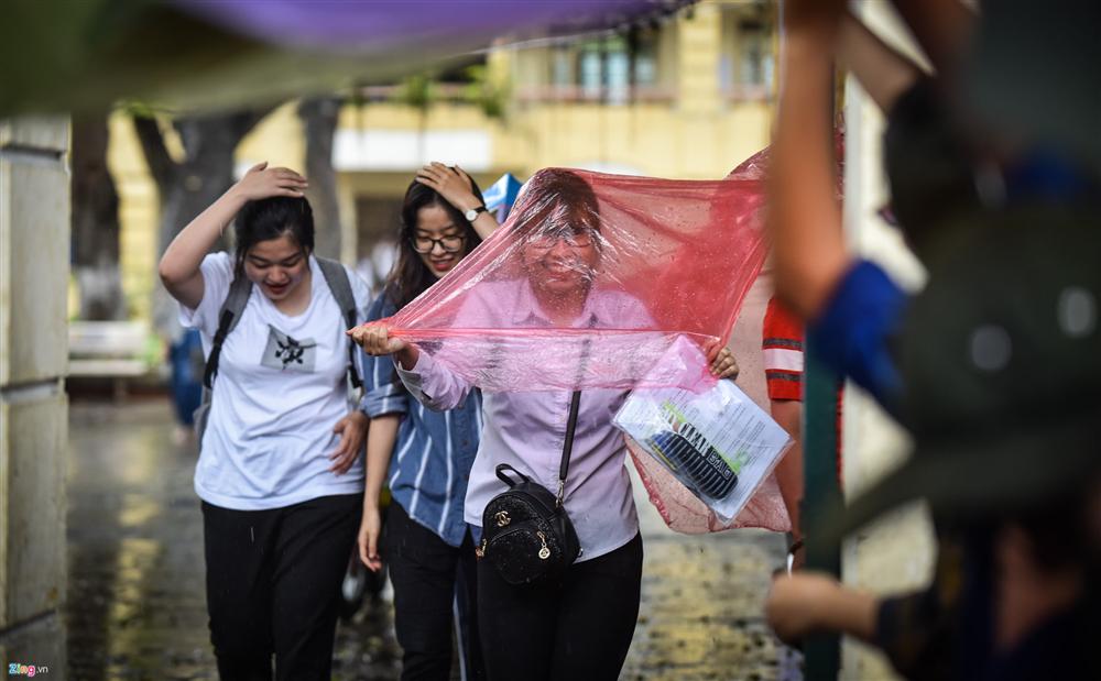 Sáng 27/6, cơn mưa rào trút xuống vào thời điểm các sĩ tử vừa hoàn thành môn thi cuối cùng của kỳ thi THPT quốc gia 2018.