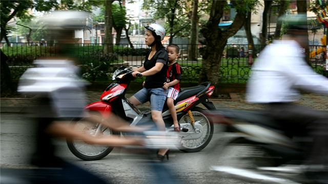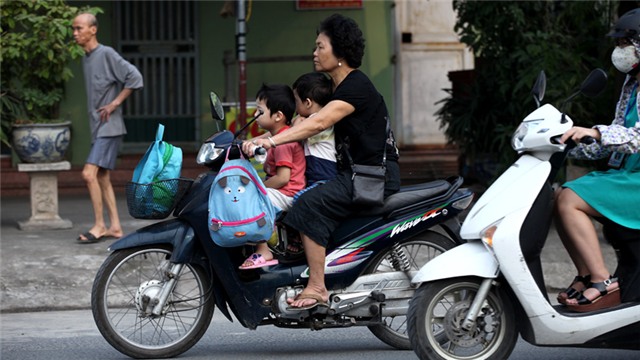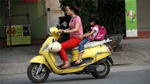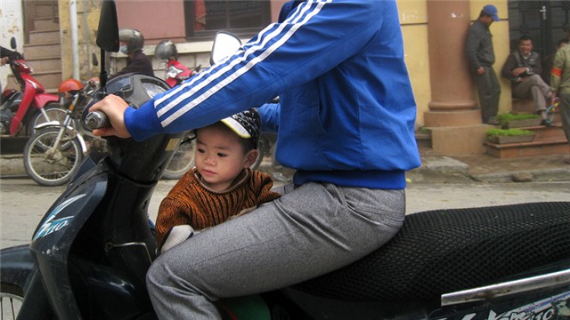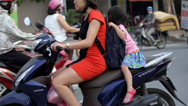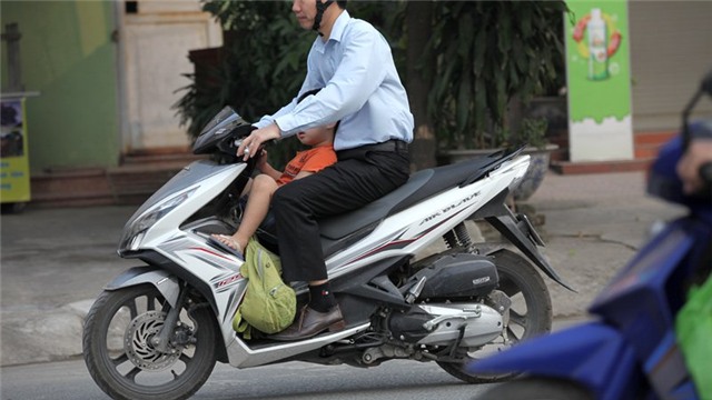 Hình ảnh chở trẻ em trên xe máy mà không hề có phương tiện bảo hiểm hay đặt trẻ ở những vị trí không được thiết kế để chở người trên xe máy xuất hiện nhan nhản trên đường phố. Tính mạng những đứa trẻ được chở kiểu này luôn ở tình trạng "ngàn cân treo sợi tóc".
