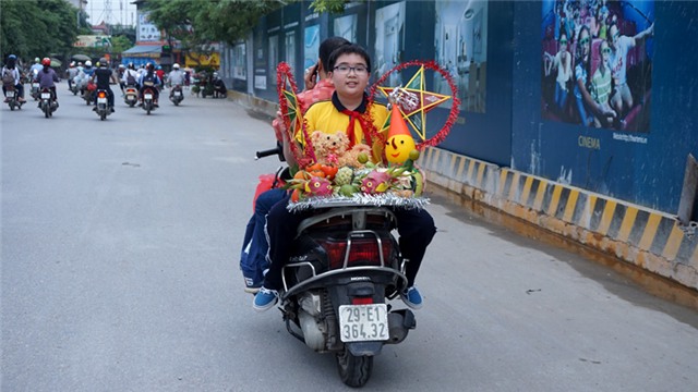 Một kiểu "treo tính mạng trẻ" vào dịp tết Trung thu 2015 (Ảnh chụp trên phố Tôn Thất Tùng). |