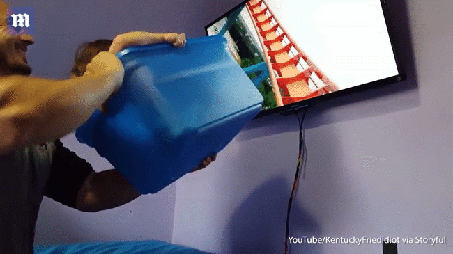 Ông bố này đã tìm một đoạn video chơi tàu lượn siêu tốc rồi chiếu nó trên màn hình lớn. Sau đó, cô con gái được đặt vào trong một chiếc chậu nhựa màu xanh. Cha nâng em tới đâu thì di chuyển, nghiêng người, lên xuống như chuyển động của chiếc tàu siêu tốc trong đoạn video. Thậm chí, ông còn tạo tiếng động để cho trải nghiệm của cô bé thêm "chân thật".