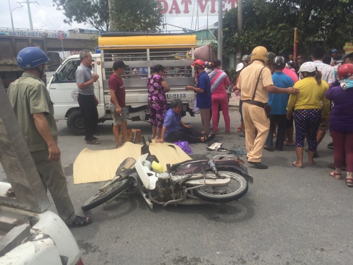 Cha ôm thi thể con trai tử vong gào khóc giữa đường sau va chạm với xe ben. Ảnh: C.T