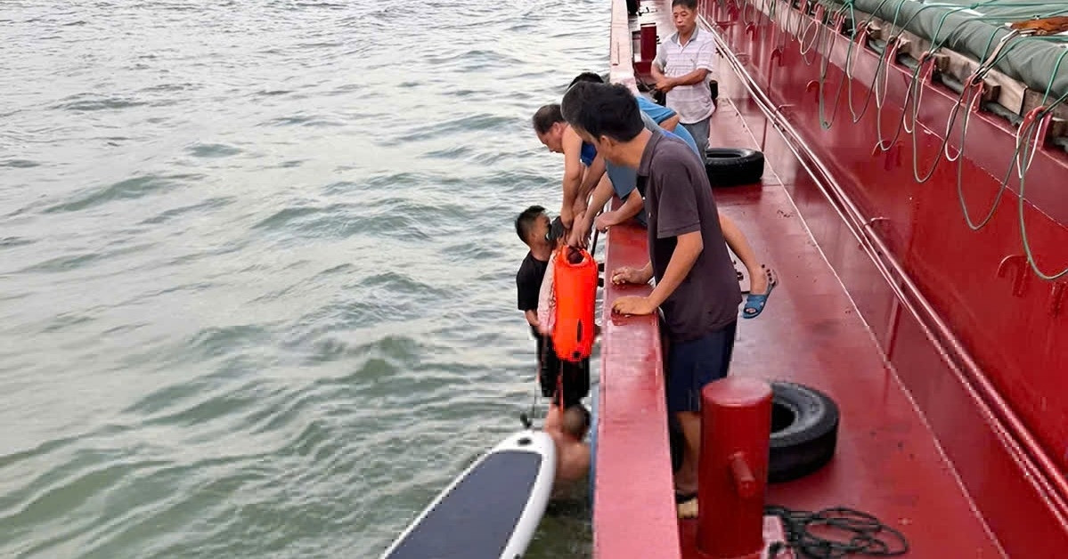 Cũng theo anh Tùng, đến khoảng 6h sáng 31/7, khi thấy chiếc tàu hàng từ xa đang tiến lại gần vị trí của hai cha con, anh đã dùng tay vẫy và kêu cứu.
