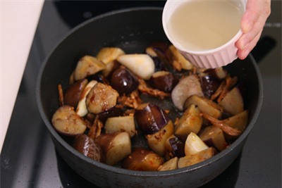 ![]() | ![]() Múc cà tím xào ra bát dùng nóng. |