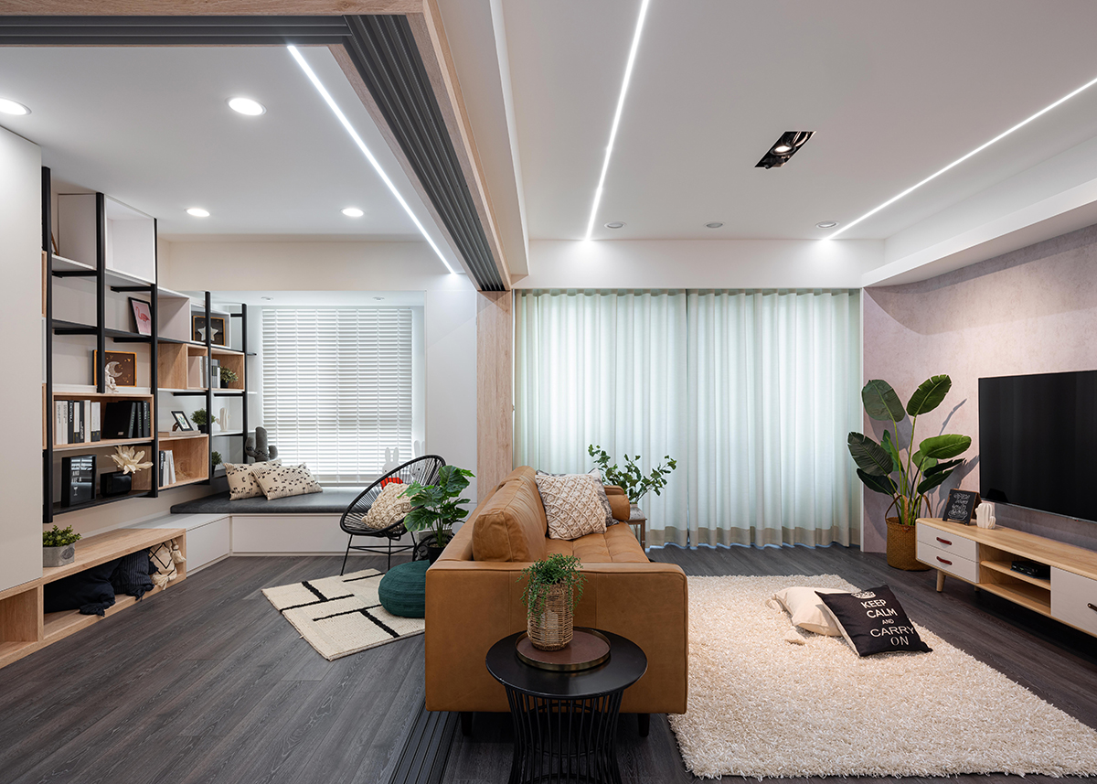 Không gian chính của căn hộ có những khung cửa sổ ngập tràn ánh sáng tự nhiên. Đó cũng chính là lý do vợ chồng chủ nhà muốn thiết kế toàn bộ khu vực chính ở gần khung cửa sổ bao gồm phòng khách và phòng ngủ.