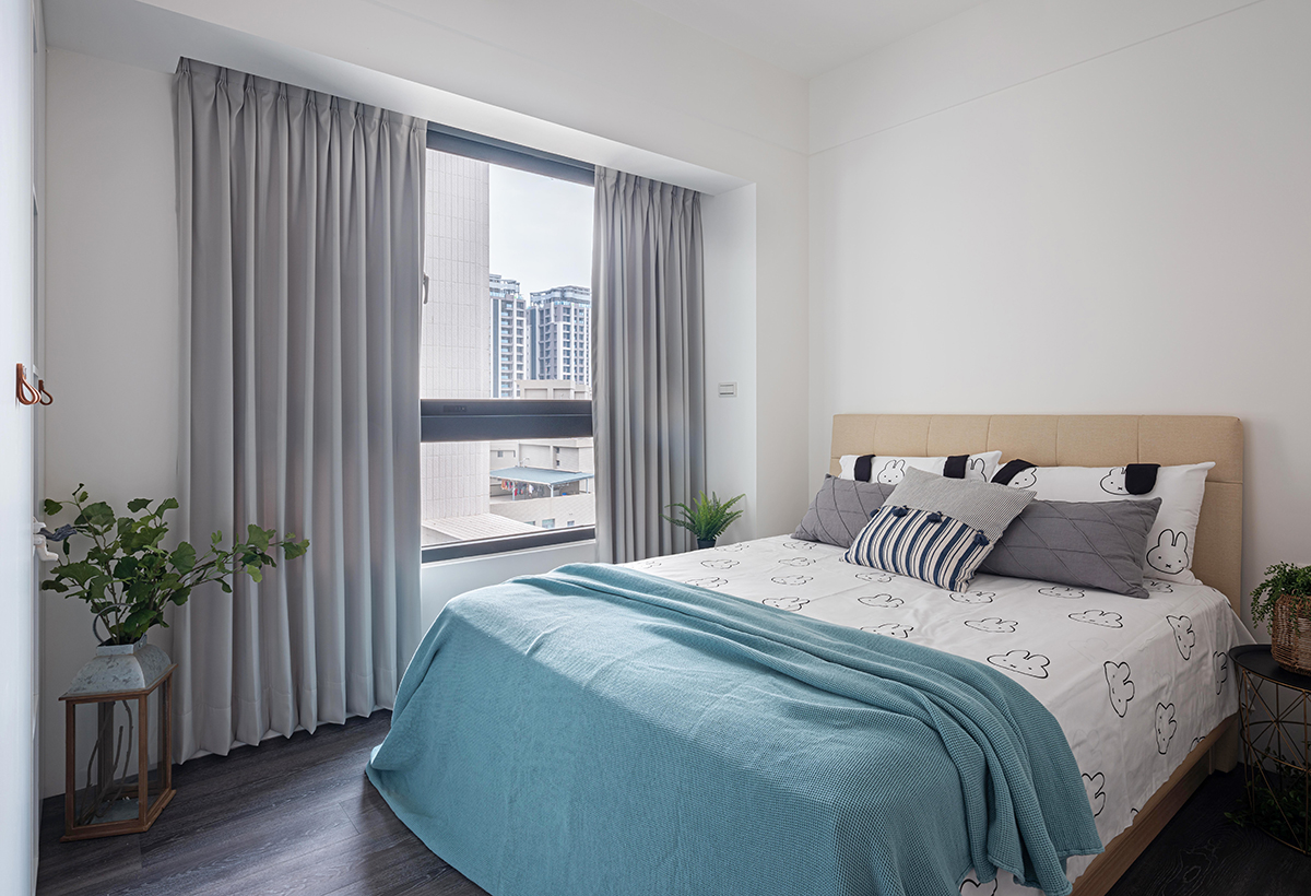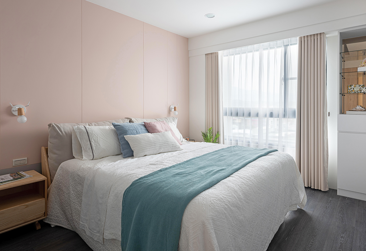 Dù không gian sống có phần hạn chế về diện tích nhưng khu vực nghỉ ngơi vẫn được tách biệt. Căn phòng đẹp nhẹ nhàng với sắc màu xám của sàn gỗ, màu cam hồng của gỗ ốp tường. Không gian được decor với màu pastel từ rèm đến chăn ga giúp căn phòng trở thành nơi nghỉ ngơi đầy thú vị cho cuộc sống sinh hoạt thường ngày.
