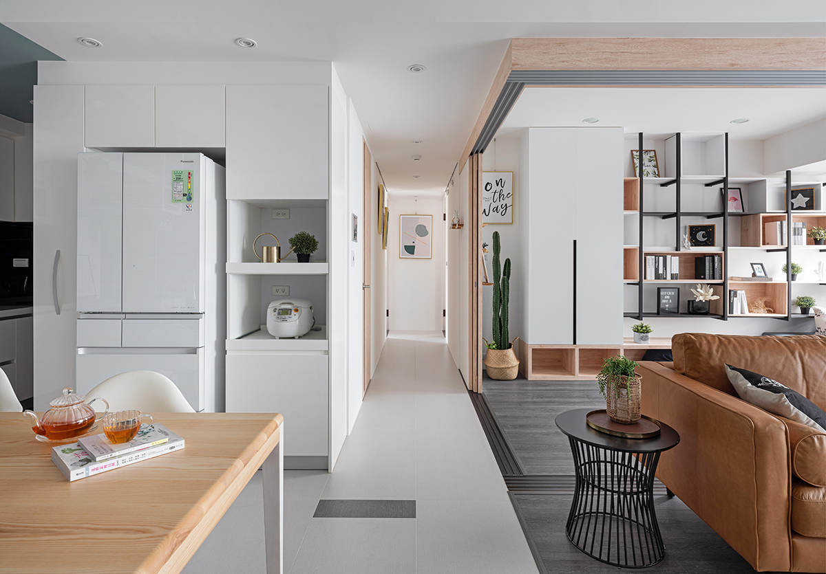 Căn hộ dù nhỏ vẫn có trục chính lối đi ở giữa phân chia các không gian chức năng để mọi người cảm thấy tiện lợi hơn khi di chuyển cũng như định hình từng góc chức năng.