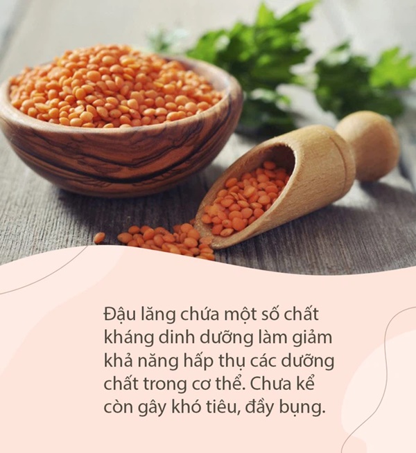 Tuy nhiên, đậu lăng cũng chứa một số chất kháng dinh dưỡng như trypsin và phytic acid, làm giảm khả năng hấp thụ dưỡng chất trong cơ thể. Ăn quá nhiều loại đậu này cũng gây khó tiêu, đầy bụng trong vài ngày liên tục. Nếu bạn có hệ tiêu hóa yếu thì phải hạn chế hết sức kẻo sinh bệnh.