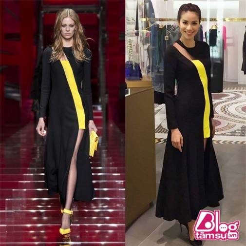 Còn bộ trang phục này của Versace Phạm Hương mặc hơi rộng so với người mẫu Tây