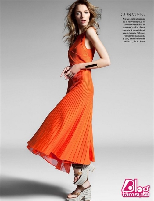 Chiếc đầm mềm mại màu cam này thuộc thương hiệu Salvatore Ferragamo, tưởng chừng đơn giản nhưng có giá tới 60 triệu đồng