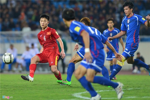 3. Đình Hoàng: 8 điểm. Bảo đảm sự an toàn bên cánh của mình, điểm nhấn của Đình Hoàng chính là pha căng ngang như đặt để Văn Toàn đệm lòng tung lưới Đài Loan trong bàn thắng thứ 2. Ảnh: Tuấn Mark |