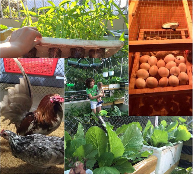 Ngoài công việc kinh doanh buôn bán bận rộn, chị Hạnh còn tự tay trồng rau, nuôi gà, ấp trứng ở sân thượng ngay tại nhà.