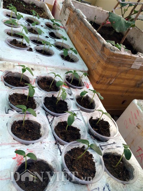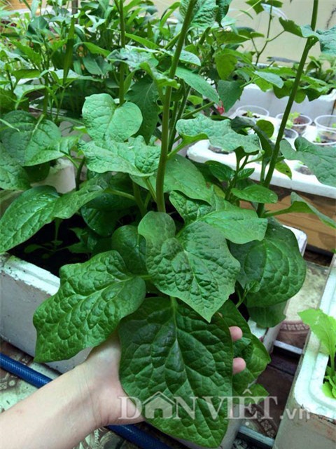 Chia sẻ về thời gian đầu trồng rau, chị Hạnh tâm sự: “Mình cùng chồng đã phải vác từng bao đất lên tầng ba, cắt ghép thùng xốp và thu gom chai nhựa về đục lỗ làm lớp đệm thoáng khí cho các loại rễ cây sinh trường và phát triển”.