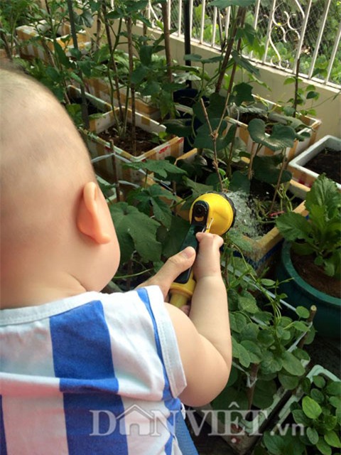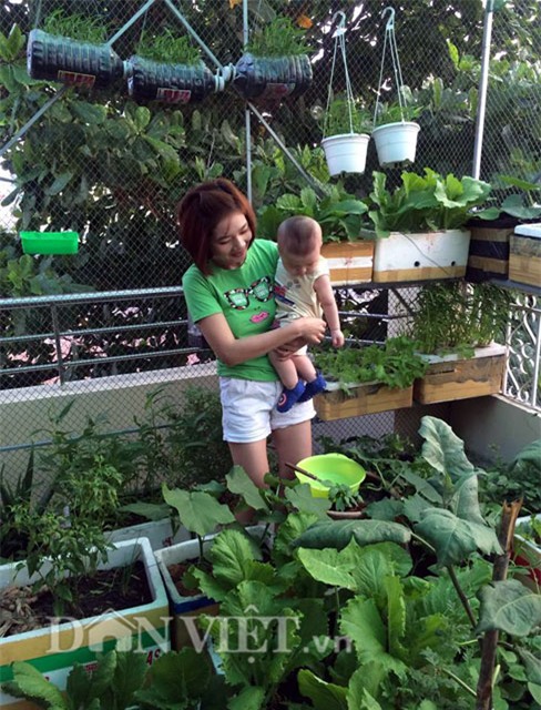 “Mới đầu anh chồng cũng sợ vợ cực nhọc vì chăm sóc con nhỏ mà còn trồng rau nên anh không muốn cho mình làm, nhưng thú thực vì đam mê và muốn có nguồn rau sạch nên mình hạ quyết tâm làm cho bằng được. Thấy vợ quyết tâm nên anh xã mình cũng cùng chung tay giúp đỡ”.