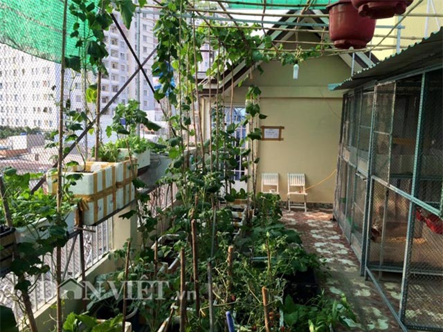 Không chỉ bản thân thích trồng rau, nuôi gà, chị còn nhận được sự ủng hộ nhiệt tình của "anh xã". Chị kể: “Chồng mình còn hàn cả giàn sắt để chống bọn chuột phá rau. Anh còn làm hẳn cả chuồng nuôi gà vừa đảm bảo không chỉ nguồn thịt mà cả nguồn trứng sạch cho cả nhà”.