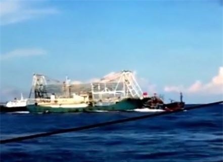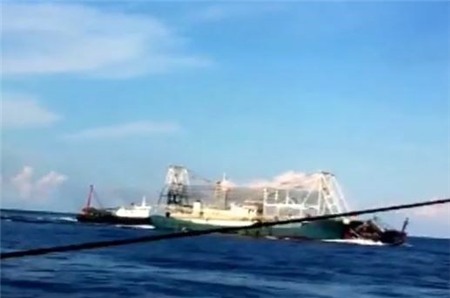 | Đám người trên tàu Trung Quốc vẫn dã man tiếp tục thúc con tàu vỏ sắt đâm vào tàu cá Việt Nam |
