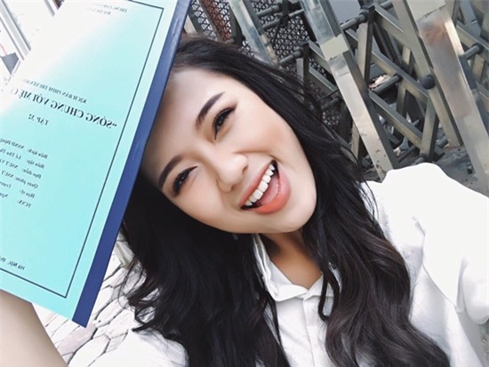 Trang Cherry cầm trên tay kịch bản của phim "Sống chung với mẹ chồng".