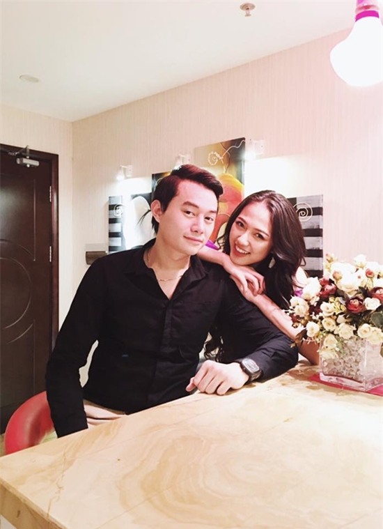 Trang Cherry và Anh Dũng sau một cảnh quay.