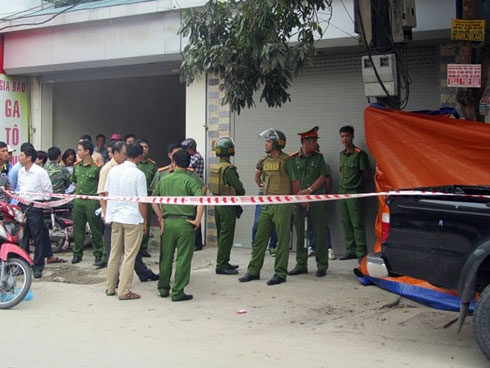 Khi nghe tiếng súng nổ, người dân chạy sang phát hiện vợ chồng ông Vụ tử vong trên vũng máu cạnh đó là người đàn ông lạ mặt trọng thương.
