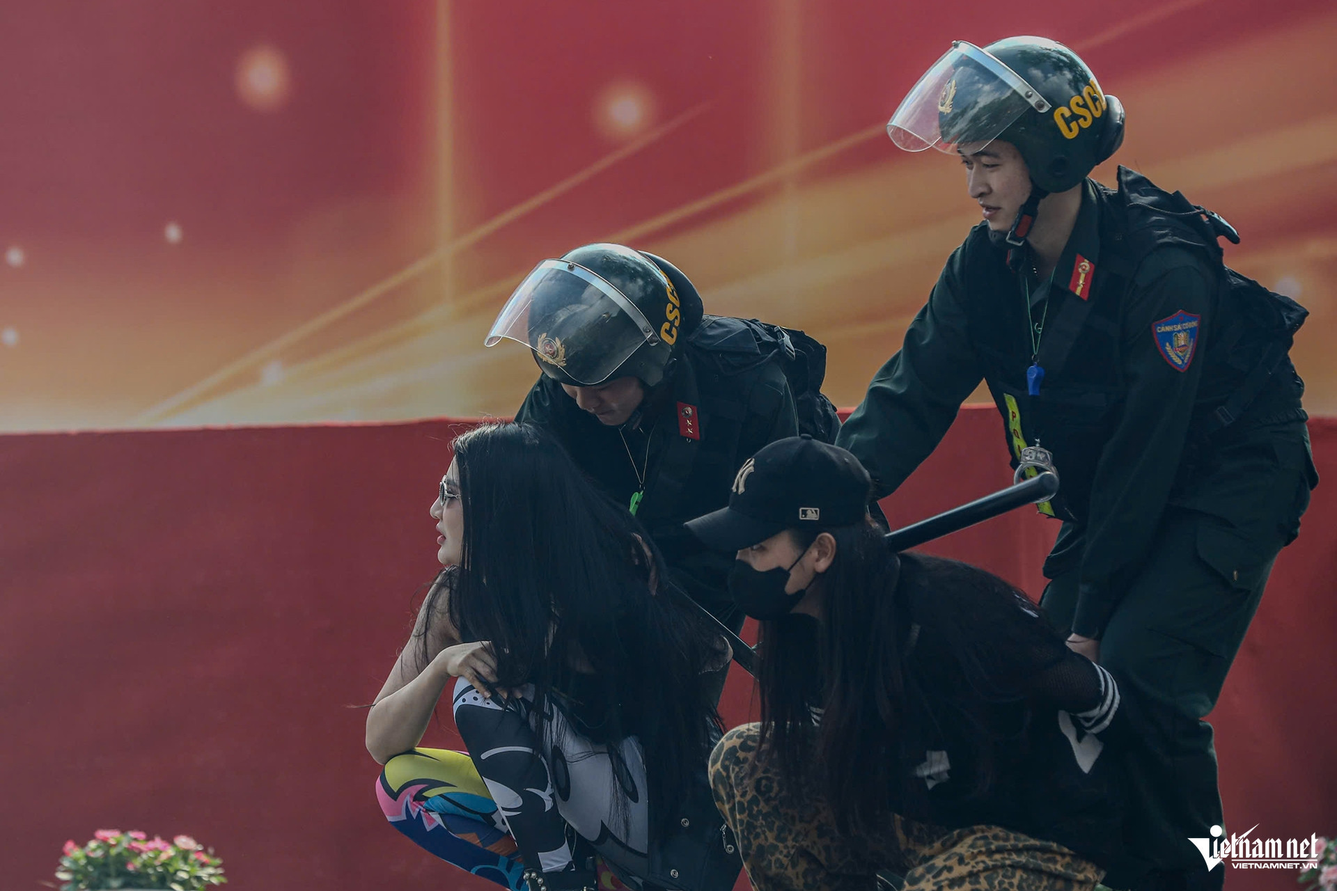 Trong đó, người dân ấn tượng với màn trình diễn võ thuật, tình huống trấn áp nhóm "quái xế" mang theo hung khí lạng lách, đánh võng gây náo loạn đường phố. Nhóm đối tượng này còn có thái độ chống đối người thi hành công vụ...
