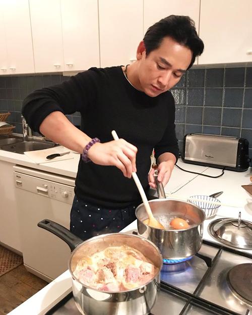 Nam diễn viên sinh năm 1979 còn từng thể hiện khả năng nấu ăn trong những chuyến đi từ thiện. Anh không ngại xắn tay vào bếp. Dù sơ mi, tóc vuốt điển trai ngời ngời nhưng chàng soái ca vẫn nhiệt tình nấu nướng, và với anh đó là những khoảnh khắc thật hạnh phúc.