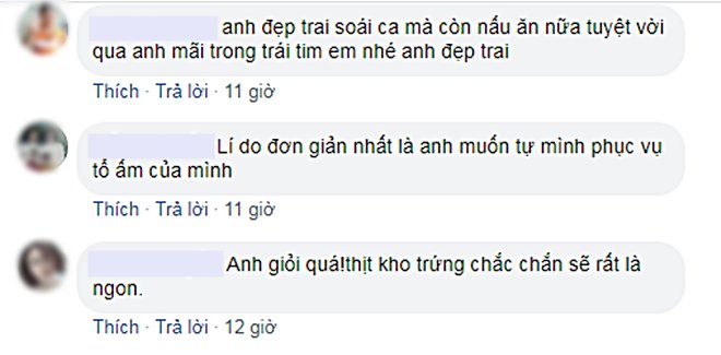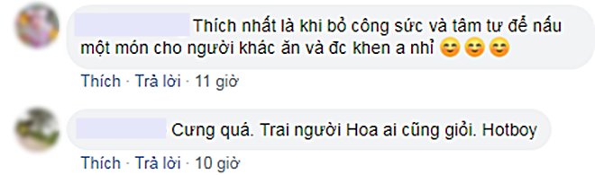 Fan tấm tắc khen ngợi nam diễn viên đã đẹp trai lại còn nấu ăn ngon. Không ít cô gái còn "thả thính" lại chàng.