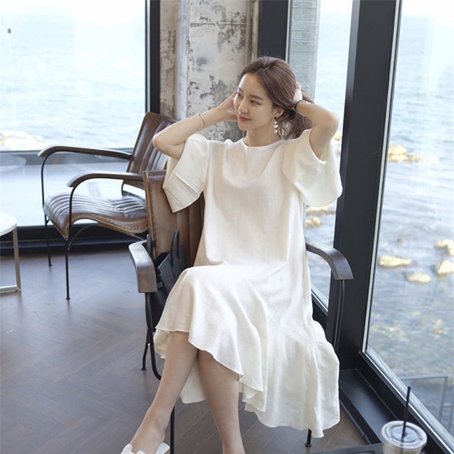 Với những cô nàng tôn thờ phong cách nữ tính thì váy trắng tay bồng cùng dép lê quai to thực sự là combo trên cả tuyệt vời đấy.