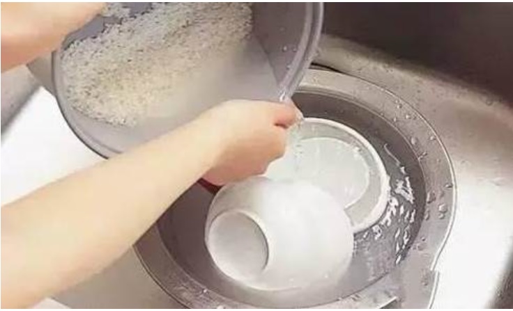 Nước vo gạo có thể rửa sạch các loại chén dĩa mà không bị dính dầu mỡ quá nhiều. Lúc rửa chén bằng nước vo gạo bạn chỉ cần dùng giẻ mềm nhúng một ít nước vo gạo rồi rửa. Khi rửa xong bạn chỉ cần tráng qua nước sạch là hoàn thành. Không những chén dĩa sạch sẽ mà da tay cũng cực kỳ mịn màng nữa đó!