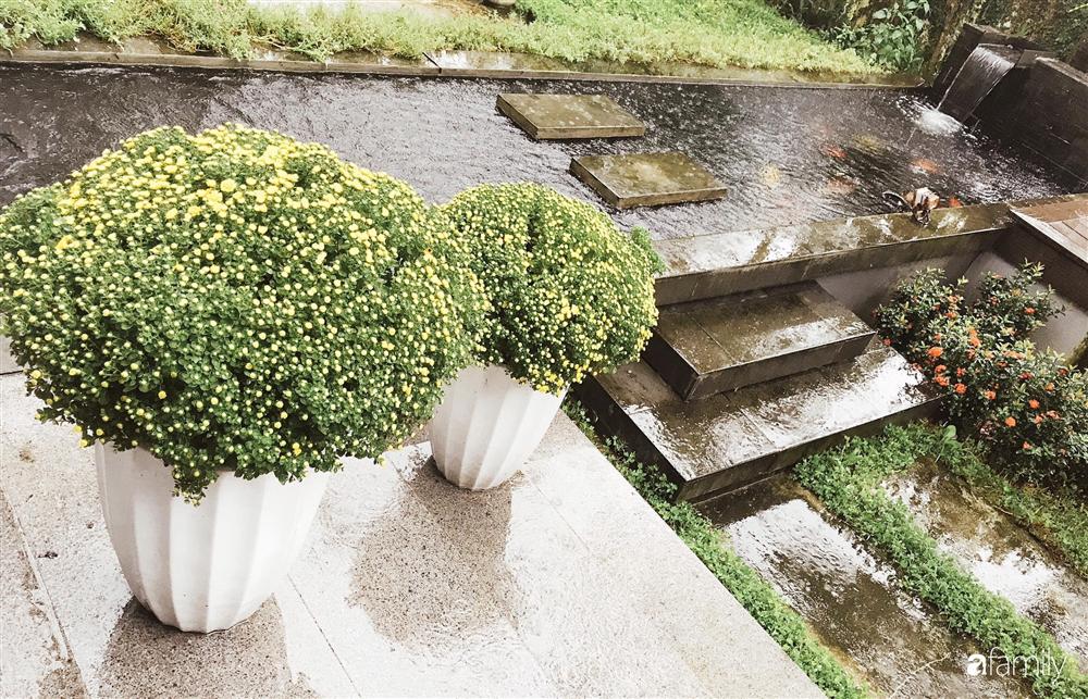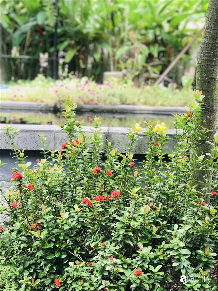 Đi dạo quanh khoảng sân vườn rộng đến 200m², ai cũng có thể dễ dàng cảm nhận được không khí trong lành, mát mẻ từ những bụi cây xanh, từ hồ cá trong veo tĩnh lặng.