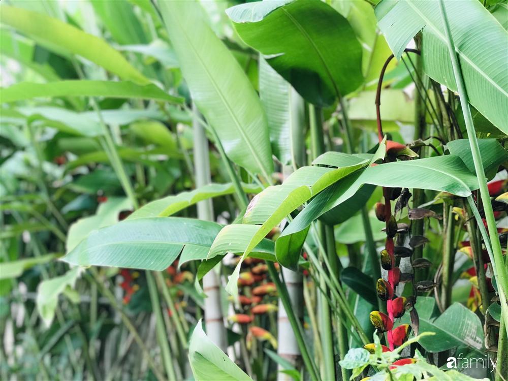 Hàng chuối cảnh xanh tươi nở hoa đẹp mắt.