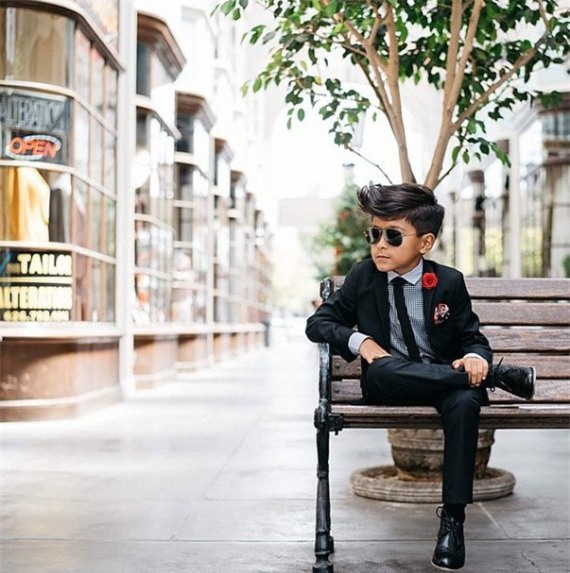 Mái tóc vuốt cũng là một trong những “đặc điểm” hút mắt của biểu tượng thời trang nhí này