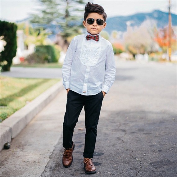 Vẻ tự tin của cậu bé khiến cậu trông như một người mẫu nhí chuyên nghiệp.